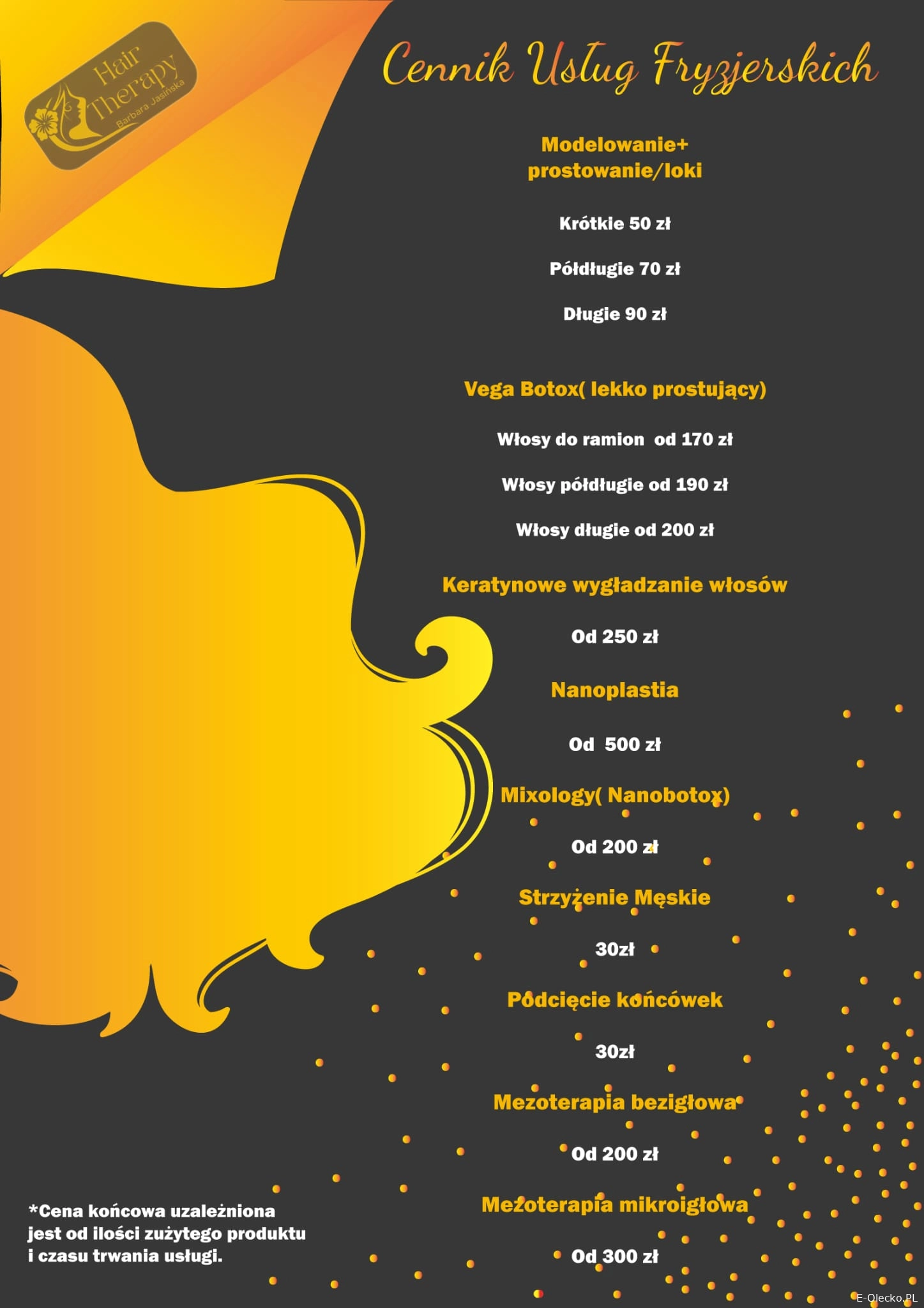 Salon HairTherapy zajmuje się zabiegami pielęgnacyjnymi, dzięki którym włosy stają się nawilżone i odżywione. Posiadamy kompetencje do przeprowadzania zabiegów takich jak: Vegan Botox, prostowanie keratynowe, nanoplastię, mixology. Wykonuję również upięcia i stylizację włosów. W ofercie posiadam również strzyżenie męskie oraz modelowanie z podcięciem włosów u kobiet.