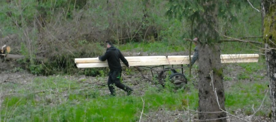 Okazało się, że nasz „pomysłowy” obywatel postanowił zrobić sobie darmowe źródło drewna. Przez trzcinowisko zbudował prowizoryczną groblę i niczym w grze survivalowej wywoził drewno wózkiem. Piłą elektryczną ciachał drzewa, kroił na kawałki, robił z tego części konstrukcyjne i wszystko zgrabnie przewoził na swoją posesję. A wszystko to z gracją domowego majsterkowicza… i pod czujnym okiem monitoringu. Kamera go kochała, a on nie wiedział, że kręci sequel "Sami Swoi: Tartak Edition".