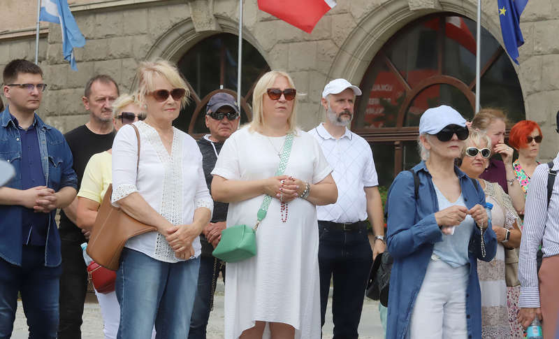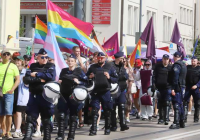 Pod ratuszem oba światy stanęły twarzą w twarz. Po jednej stronie flagi tęczowe falujące na wietrze, po drugiej banery, które raczej nie nadają się do dziecięcych książeczek. Policja czuwała, więc zamiast scen z „Gry o tron” był raczej pokaz pokojowego… ale głośnego sąsiedztwa.